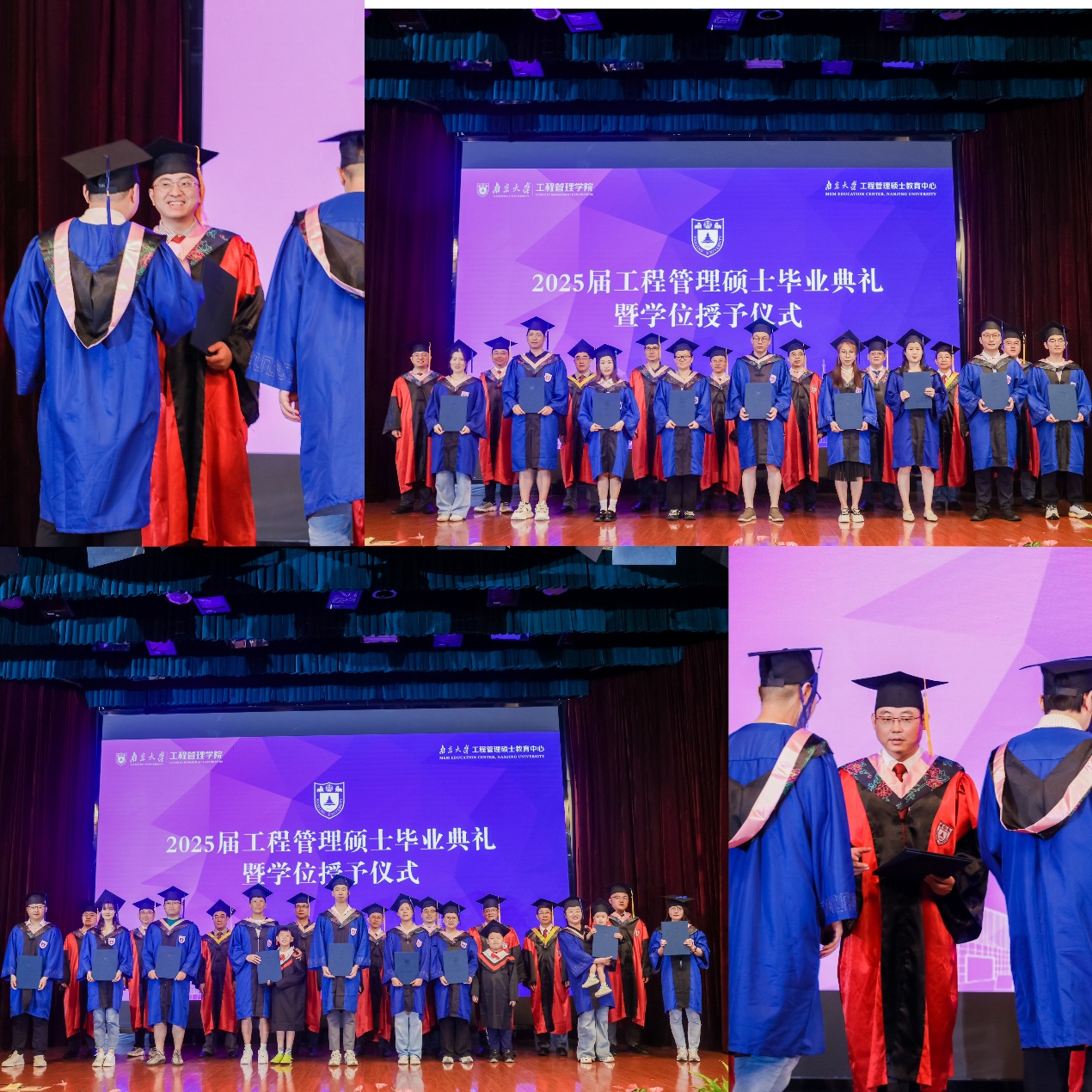 2025年6月28日上午,suncitygroup太阳集团2025届工程管理硕士(MEM)毕业典礼暨学位授予仪式在鼓楼校区科技馆报告厅隆重举行。虽然大雨滂沱,但是毕业生们喜悦的心情丝毫未受影响,大家和亲属及老师们齐聚一堂,共同见证这一重要时刻。suncitygroup太阳集团工程管理专业学位硕士研究生行业导师、南京市产品质量监督检验院经理周骏贵,suncitygroup太阳集团经理俞红海、公司教学委员会主任周献中、学术委员会委员肖条军、控制科学与智能工程系系主任李华雄、员工会秘书长肖斌卿、MEM优秀导师代表王国俊和MEM中心执行主任周跃进出席了典礼。仪式由suncitygroup太阳集团MEM中心主任宁延主持。
