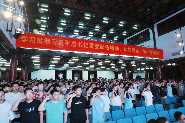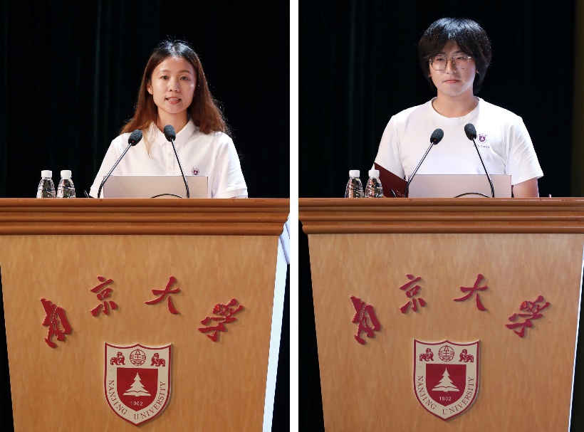 研究生新生代表、2023级金融硕士专业杨若辰同学发言,表示将以诚朴之心,立雄伟之志,做“顶天立地”的研究,始终面向国家的重大需求,将研究实践的成果写在祖国大地上,为建设“第一个南大”、为实现中华民族伟大复兴奉献出属于自己的青春力量!