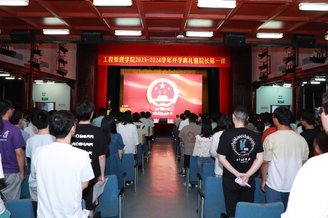 本科生新生代表、2022级工业工程专业柏宇同学发言,表示将秉承“学道酬实,至任于群”的院训,以服务新型工业化建设战略、智改数转国家重大需求为追求,构建自身交叉融合型的新型知识体系,为科技报国积蓄力量,背负强国之担,永葆奋进之姿。