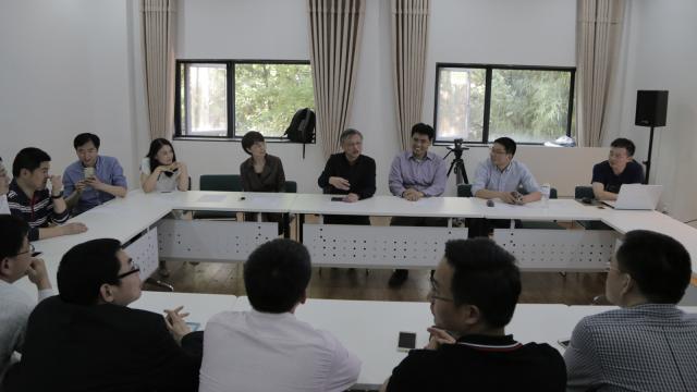 在“师生座谈会”上,盛昭瀚、焦小澄、周晶、沈厚才等老师与第一年入学的硕士研究生共同回忆了公司初创时的艰辛。员工们共同追忆了在母校难忘的求学经历,重温了昔日师生的浓郁情怀,感慨个人今天的发展有赖于母校昔日的培养。现场还通过在线视频与没能归来的员工进行隔空对话,场面激动人心。