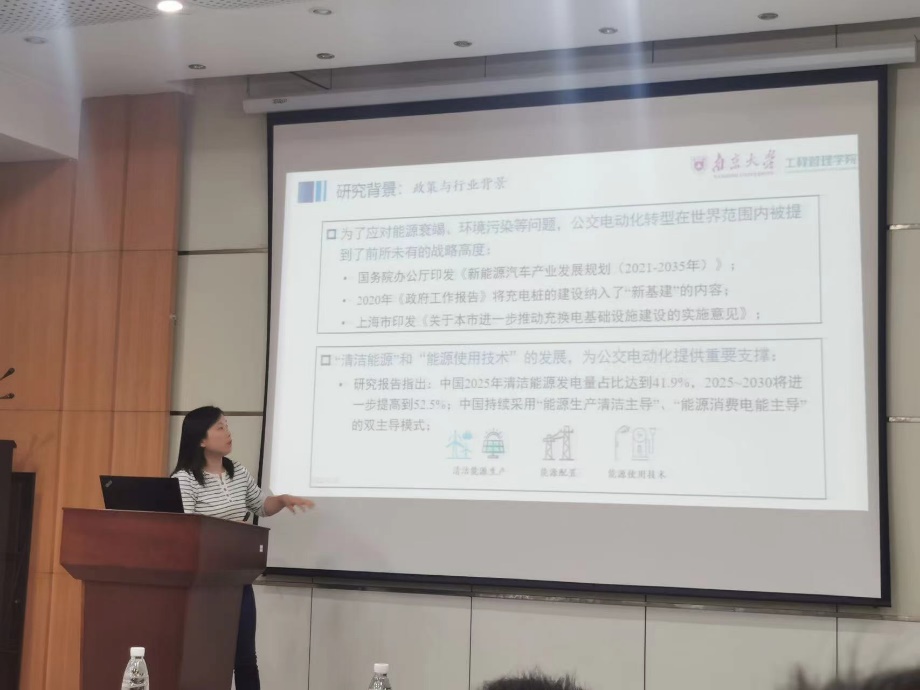 第二位汇报人徐红利副教授分享了报告《考虑在途充电的电动公交充电设施规划与调度管理研究》。徐红利副教授指出“电动汽车+充电网”是实现碳中和的有效路径,充电设施规划与调度是公交电动化过程中的重要环节,“在途充电”对于解决公交“场站无法配建充电设施”、“充电空驶里程高”、“车辆周转效率低”等问题有巨大的潜力。她针对多场站、多条线路的公交网络,考虑在途充电、交叉公交线路的设施共用,以及过度充电与放电对电池容量退化的影响,构建了公交网络充电设施规划与充电调度的混合整数规划模型,同时她还针对深圳的真实公交网络进行了数值实验,验证了模型的可行性。