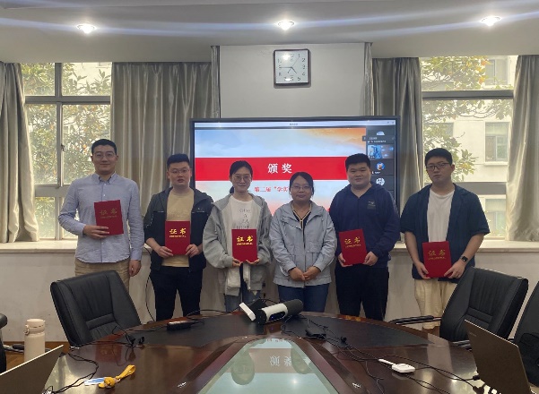 会议最后,学者嘉宾根据研究工作汇报情况进行匿名评审投票,在5位汇报人中评选出本次学术论坛的优秀报告者——21级博士生陈石。博士生党支部书记李敏向优秀报告者陈石颁发荣誉证书和奖品,向其他4位积极参与的汇报人颁发参会证明和奖品。