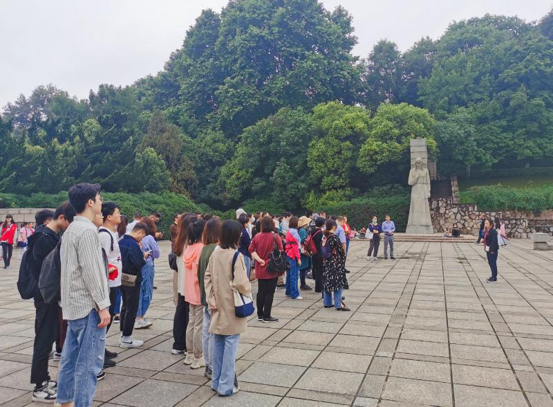随后,支部成员参观了雨花台烈士纪念馆。在纪念馆中,大家一边驻足于馆内陈列的烈士遗物、珍贵图片、文献资料,一边用心聆听邓中夏、恽代英、谭寿林等革命烈士的英雄事迹。照片上他们的神情稚嫩却又充满坚毅,襟怀救国救民的崇高理想,义无反顾地投身革命。从这些历史影像中,支部成员深切体会到当时时局的艰难与共产党人不忘初心、勇敢前进的大无畏精神,接受了深刻的党性教育。