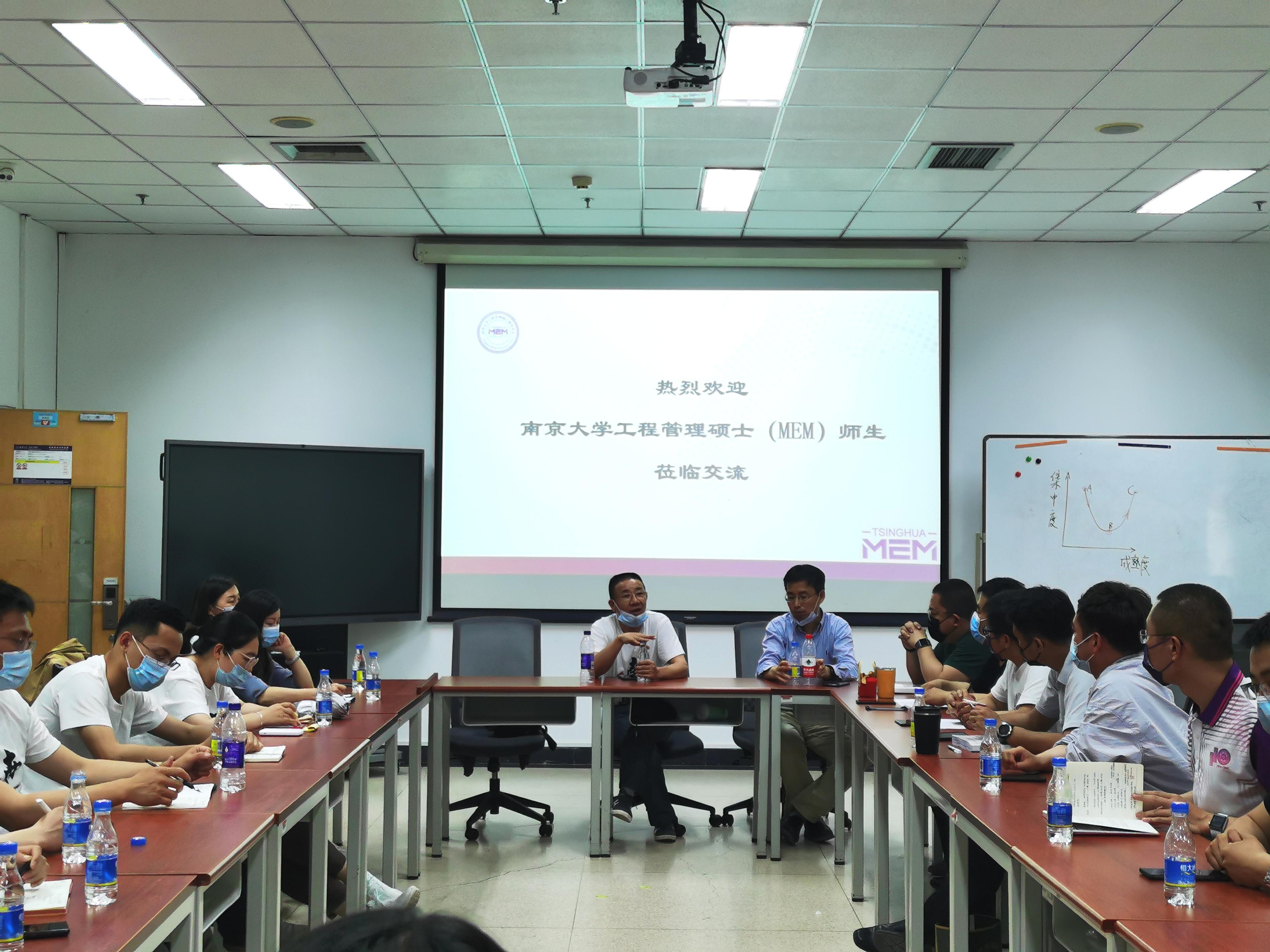 接下来,MEM同学走进清华大学课堂,与清华MEM同学一起学习蔡临宁副教授的《战略管理》课程。课后两校员工就所在公司情况、课程学习、校园活动建设等方面进行深入交流。通过交流互动,大家不仅对当前阶段学习的意义有了更加充分的认识,对工程管理学科的发展更加充满信心,对今后的职业生涯光辉前景更加期待,还为后续的两校联合活动奠定了良好的基础。