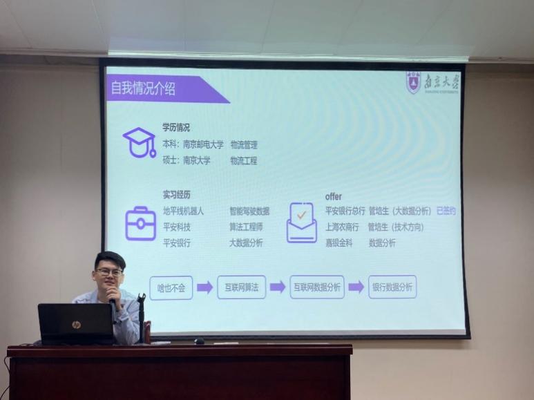 收获平安银行管培生offer的何允凯学长对银行求职经验进行分享,学长梳理了自己的求职经历与读研期间的心路历程,他认为找工作一方面要积极果断,面对机会努力争取,毫不犹疑;另一方面要主动打破信息壁垒,发挥党员战斗堡垒作用,与员工群众加强沟通,信息共享,团结志同道合者,合作共赢。在学习生活上发挥党员模范带头作用,带领身边同学共同进步。