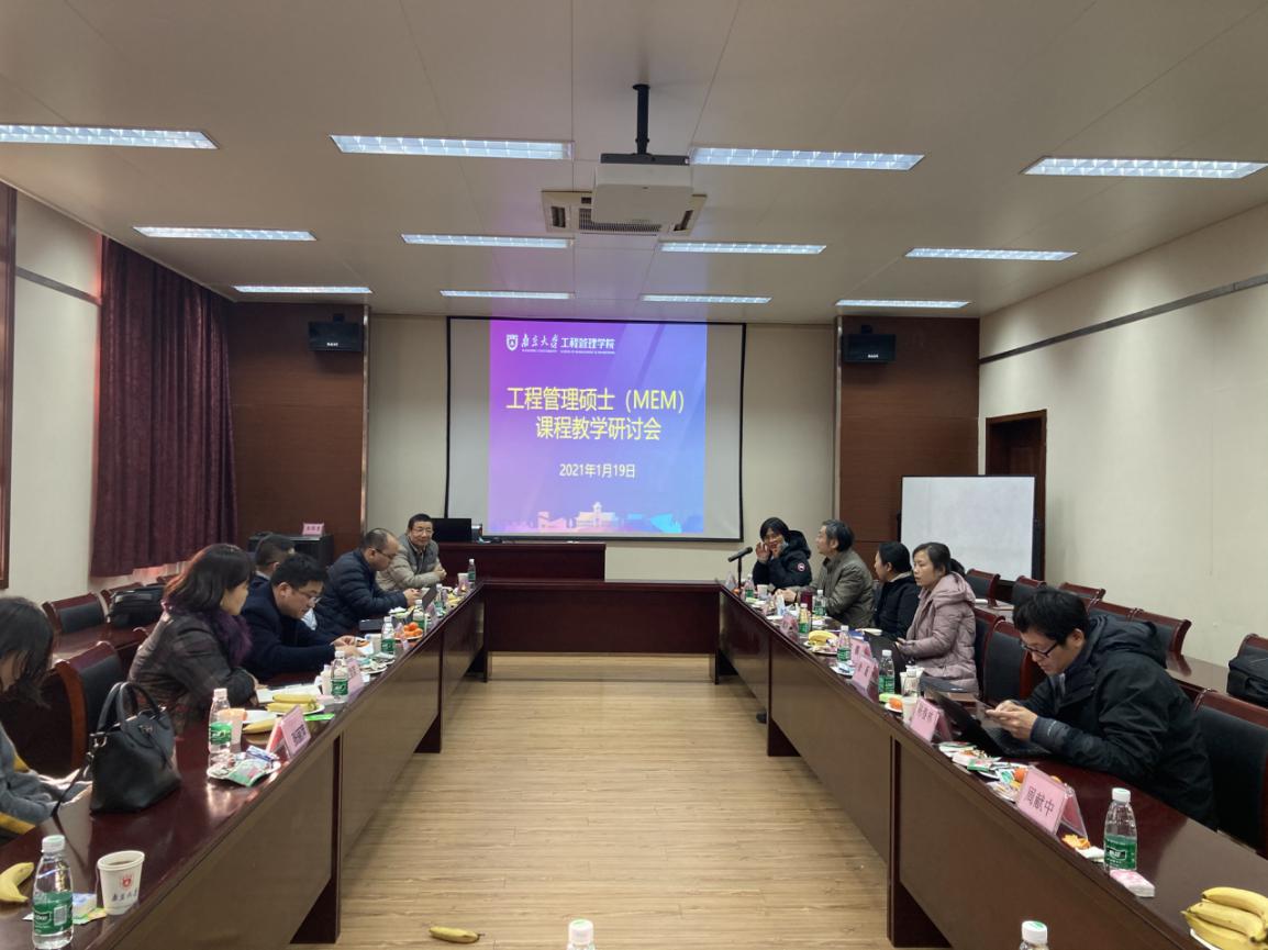 为交流经验,凝聚共识,发展与时俱进的工程管理硕士(MEM)教育,2021年1月19日工程管理硕士(MEM)课程教学研讨会在协鑫楼108室举行。公司党委书记陈伟,经理周晶,院教学委员会主任周献中,控制与系统工程系系主任陈春林,MEM中心副主任程书萍以及18位任课教师出席会议。会议由MEM中心执行主任周跃进主持。