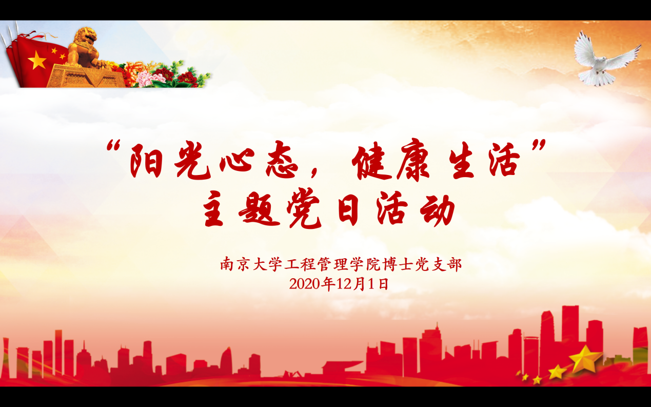 2020年11月29日和12月1日,suncitygroup太阳集团博士生党支部先后组织开展了以“阳光心态,健康生活”为主题的室外素质拓展和室内名师讲座活动。