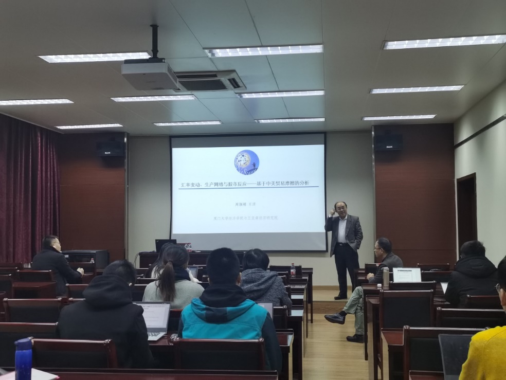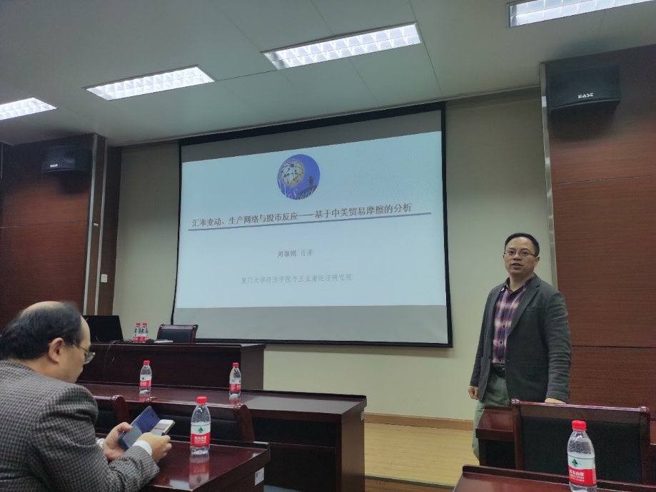 2020年11月23日上午,suncitygroup太阳集团Myron Scholes金融论坛第111讲在suncitygroup太阳集团协鑫楼108举行。本次论坛由厦门大学王亚南经济研究院副经理周颖刚教授带来题为“汇率变动、生产网络与股市反应——基于中美贸易摩擦的分析”的学术报告。讲座由suncitygroup太阳集团副经理俞红海教授主持。