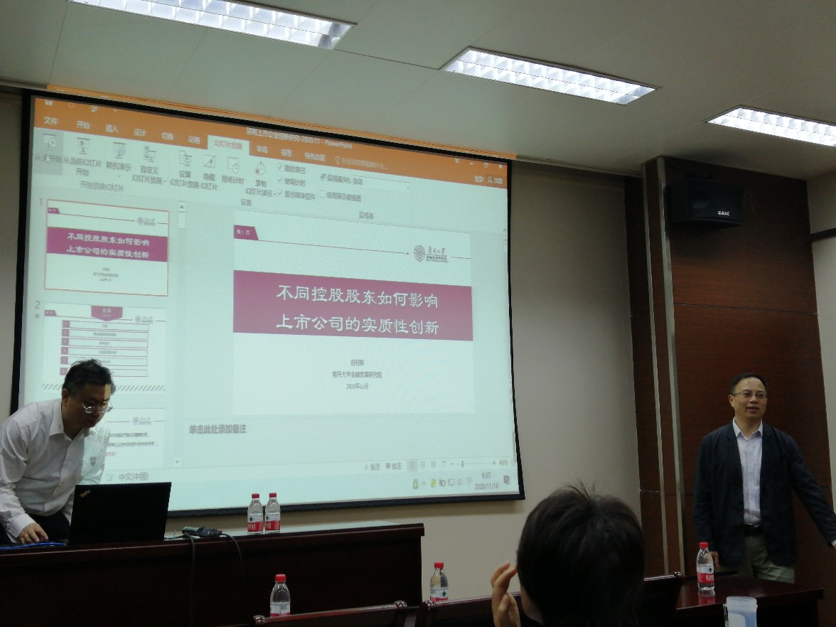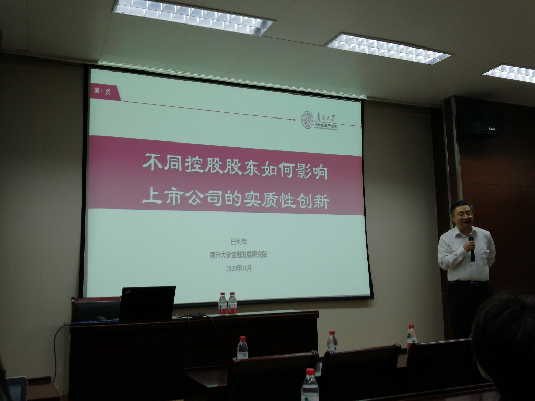 2020年11月18日上午,suncitygroup太阳集团Myron Scholes金融论坛第109讲在suncitygroup太阳集团协鑫楼108举行。本次论坛由南开大学金融发展研究院经理田利辉教授带来题为“不同控股股东如何影响上市公司的实质性创新”的学术报告,讲座由suncitygroup太阳集团副经理俞红海教授主持。