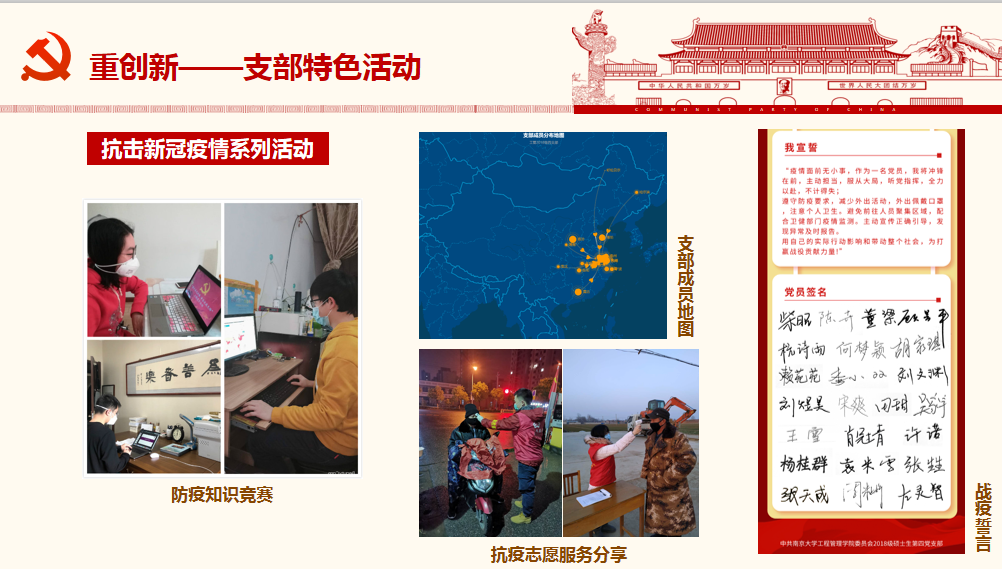 为进一步增强党支部的凝聚力,解答员工党员在学术科研、就业选择以及支部工作等方面的困惑,2020年11月11日晚,suncitygroup太阳集团2019级硕士生第二党支部和2020级硕士生第一党支部在协鑫楼104报告厅开展了“党员开讲啦”系列活动之——“朋辈示范进支部,学涯引领展先锋”主题党日活动。