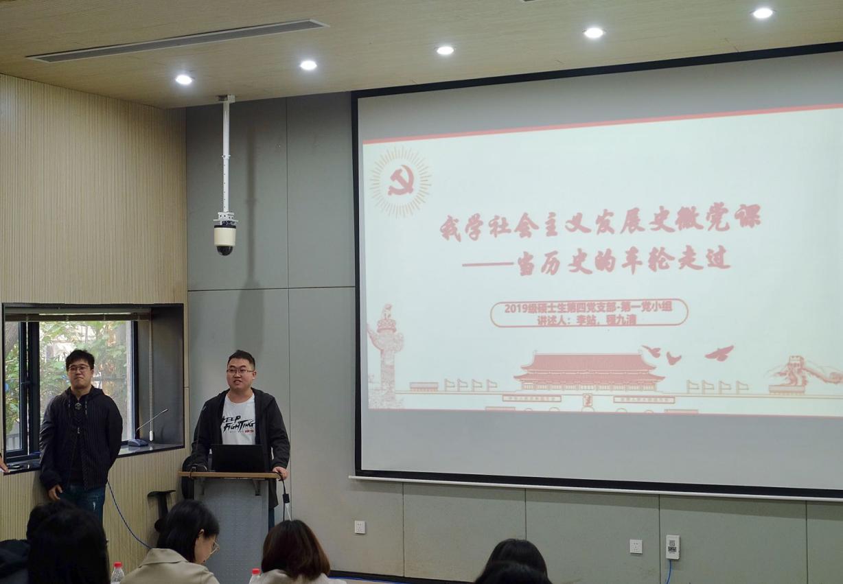 为进一步增强党员对社会主义发展史的了解,提升理论素养和党性修养,2020年10月24日下午,suncitygroup太阳集团2019级硕士第四党支部与2020级硕士第三党支部共建开展了“学四史系列活动——我学社会主义发展史”主题微党课比赛。