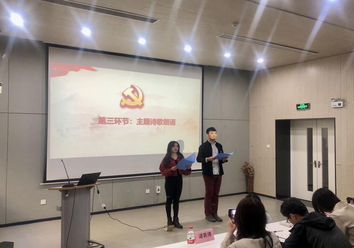 微党课比赛结束后,来自2020级硕士第三党支部的陈寅和常河同学为大家带来诗歌朗诵《十月畅想》,带领大家回忆了从建国初期的艰苦创业到改革开放新时代的长征,共同学习了社会主义制度在中国大地的发展史,感受新时代的脉搏和从未停歇的脚步。