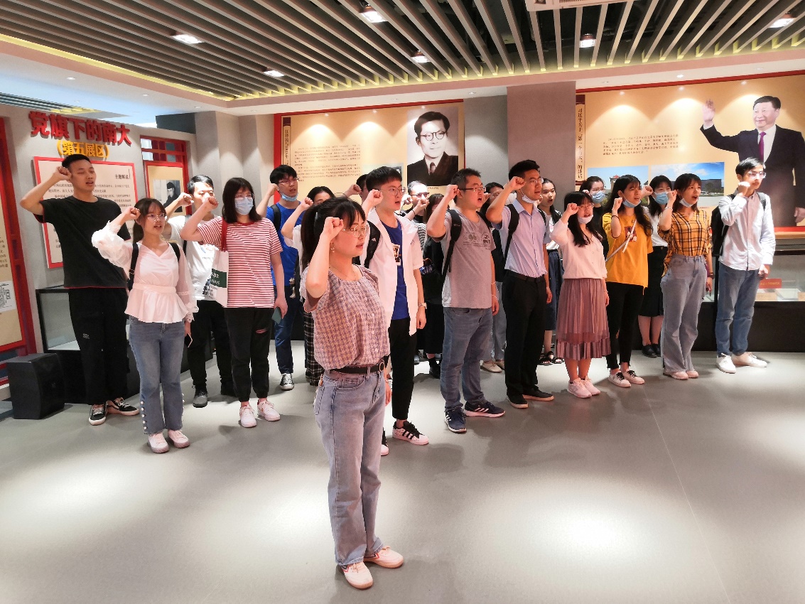 参观后,全体党员站在党旗下宣誓,重温入党誓词,坚定初心与使命,牢记作为一名党员的责任与担当。