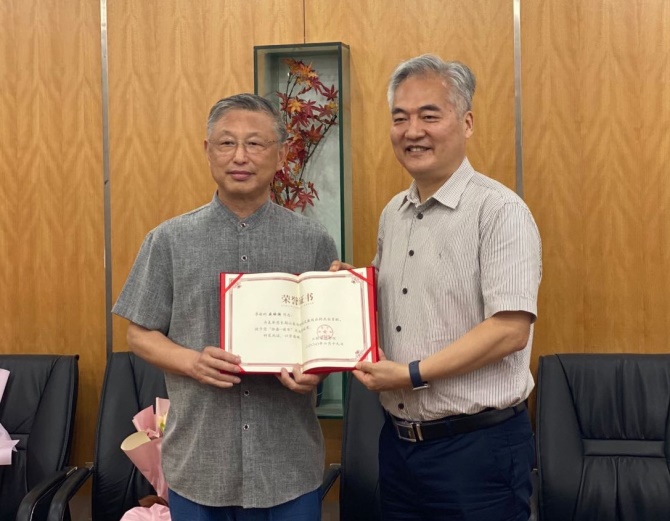 党委书记陈伟为盛昭瀚教授颁发荣誉证书