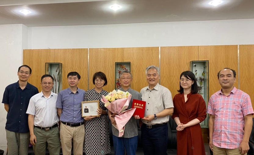 2020年6月19日下午,恰逢盛昭瀚教授名下最后一位弟子邱聿旻同学举行博士学位论文答辩会,有着特殊的意义。会后,公司党委书记陈伟、经理周晶等公司党政班子全体成员到场,为盛昭瀚教授举行了一场简朴而有意义的颁奖仪式。邱聿旻同学论文答辩委员会专家东南大学胡汉辉教授、南京航空航天大学的李邦义教授、以及公司部分教师代表也一同参加。