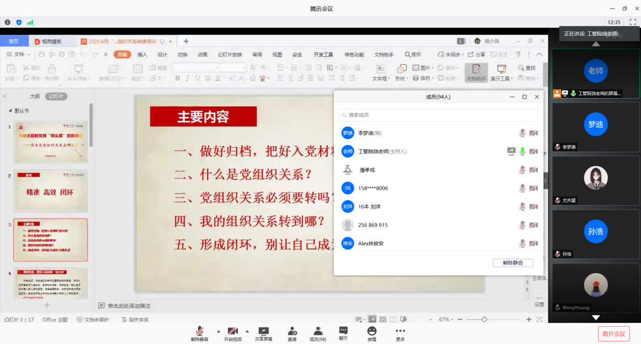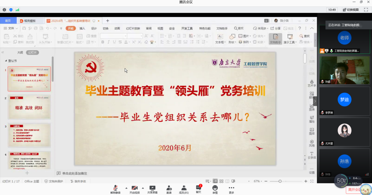 2020年6月6日下午,suncitygroup太阳集团2017级专硕第一党支部利用腾讯会议平台,线上开展了“坚守初心,梦想启航”毕业生党员主题教育活动。活动由支部书记张静璇主持,联系该支部的党委委员、公司党委副书记陈力立参加了此次活动,活动分为三个部分。