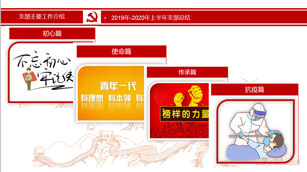 精彩纷呈的汇报获得了大家的频频点赞,例如:本科生党支部书记李晓智以“初心”“使命”“先锋”“传承”为主线,展示了支部开展的特色学习;2019级硕士生第二党支部书记闫智畅谈如何以“担青年使命,做时代先锋”为精神,打造“五合一”超一流党支部的实践与探索;2018级硕士生第四党支部书记陈卉分享了“熔炉读书会”、“陪伴---为老干部读报”等特色学习活动和志愿服务的开展;博士生党支部书记李迁立足博士生党员学习速度快、出境访学多等特点和情况,探索出了一套特色鲜明、行之有效的党员教育管理办法;教职工党支部书记李华雄带领班子成员,围绕公司“双一流”建设和防疫抗疫工作,开展多种形式的支部活动,加强学习型、服务型、创新型支部建设。