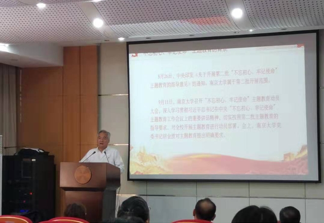 陈伟书记首先做了“不忘初心、牢记使命”的主题教育动员,要求贯彻“守初心、担使命、找差距、抓落实”的总要求,坚持四个“就是要”,为全面落实立德树人根本任务,加快建设“第一个南大”不懈奋斗!