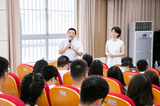 教师代表陈莹以“新的开始、新的辉煌”、“专业教学、人性管理”、“激荡思考、提升能力”、“感受文化、积蓄力量”四个主题词表达了对同学们的建议和希望,与会教师也逐一起身,向同学们送出真挚的祝福和鼓励的话。