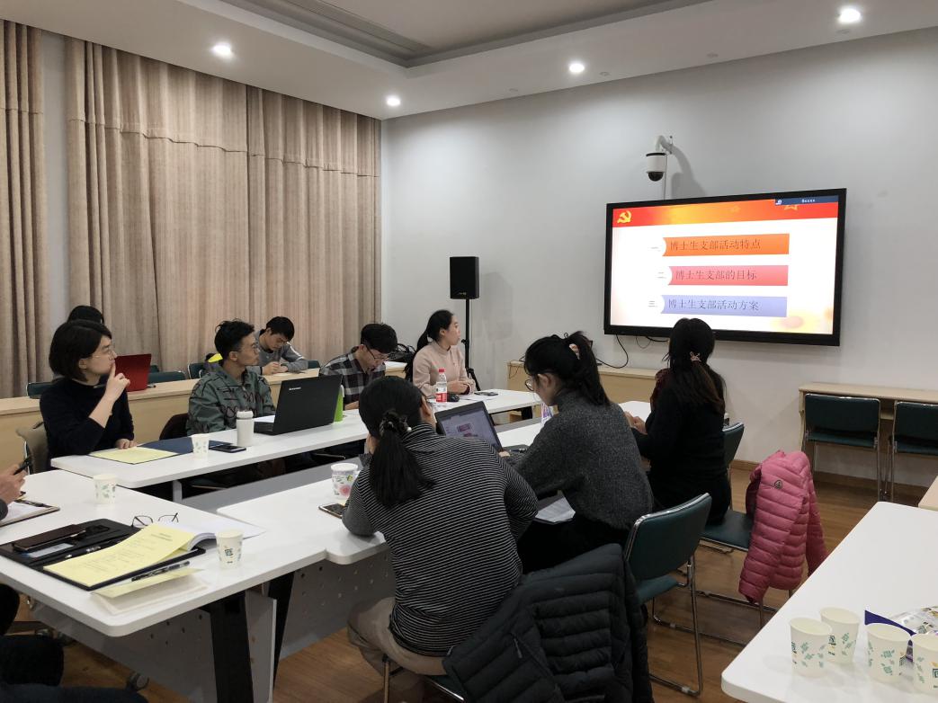 博士生党支部组织委员顾萍萍就“博士研究生党支部建设的总体方案思考”这一课题进行了发言,她认为博士研究生具有“人员组成跨度大、思想创新度高、分析角度多样深入、理论功底扎实、逻辑思维严密”等较为鲜明的特点,但存在着“对活动激情较弱、内心十分独孤、对事物表现过多的批判性方式”等现象,因此博士生支部的研讨和引导显得十分重要。针对博士生支部的特点,她提出通过“组织多样化的学习活动、坚持正确主题引导和鼓励自由发言、采用互动式课程设计和教学方式、适当兼容学术活动”等方法来提升博士生党员的党性与学术能力。