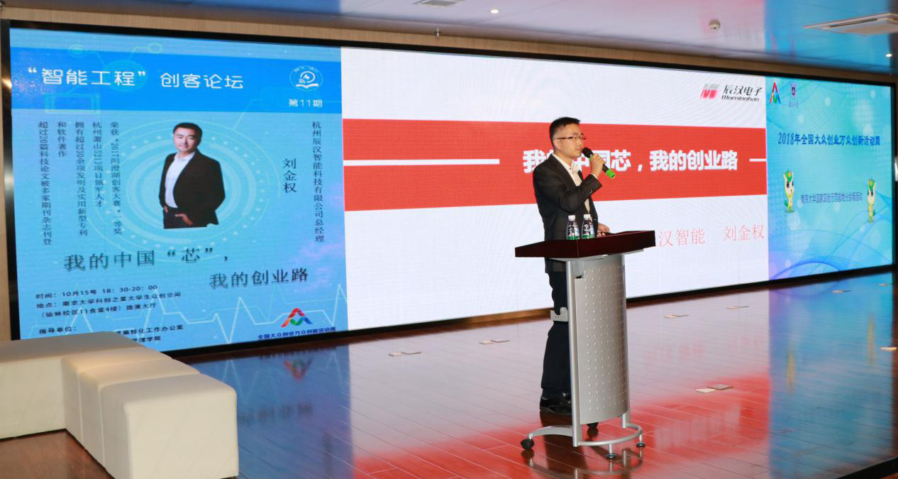 10月15日下午,“智能工程”创课论坛第十一期活动在suncitygroup太阳集团仙林校区科创之星老员工众创空间路演大厅顺利举办。本期讲座邀请到了杭州辰汉智能科技有限公司总经理刘金权先生,讲座主题为“我的中国‘芯’,我的创业路”。suncitygroup太阳集团部分老师参加了活动。