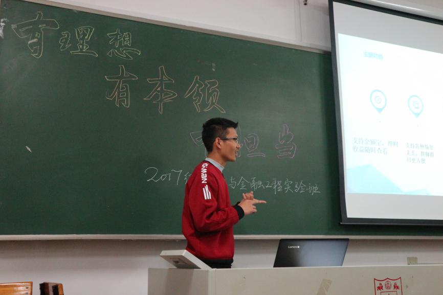 最后由班主任肖斌卿老师对班会进行总结及分享,肖老师首先对同学们的精彩汇报给予了肯定和鼓励,并指出几点改进的建议。然后通过分享习主席的青年经历,鼓励大家做“有理想、有本领、有担当”的青年。此外,肖老师也分享了在刚刚落幕的花旗杯金融创新应用大赛上的收获与轶事趣闻,激励大家向学长学姐看齐,多多参与此类竞赛,提升专业本领。最后总结引出三个假设“环境假设、能力假设、使命假设”,为同学们指明实现理想的途径,鼓励同学们将个人理想融入民族复兴大业,把个人努力嵌入国家发展大局。