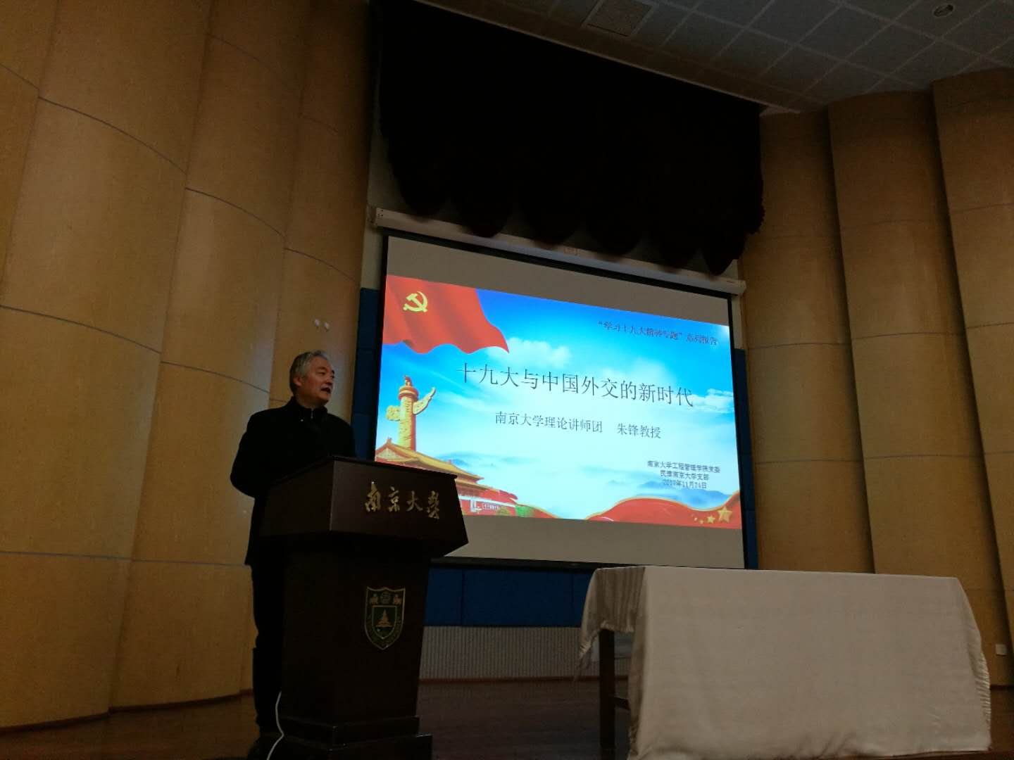 2017年11月24日下午,公司党委联合民建suncitygroup太阳集团支部邀请到suncitygroup太阳集团理论讲师团成员、中国南海研究协同创新中心执行主任、suncitygroup太阳集团国际关系研究院经理朱锋教授于逸夫馆报告厅作专题辅导报告,报告主题为:十九大与中国外交的新时代。报告由公司党委书记陈伟主持,公司师生、民建南大支部成员近200名同志参加了本次学习。