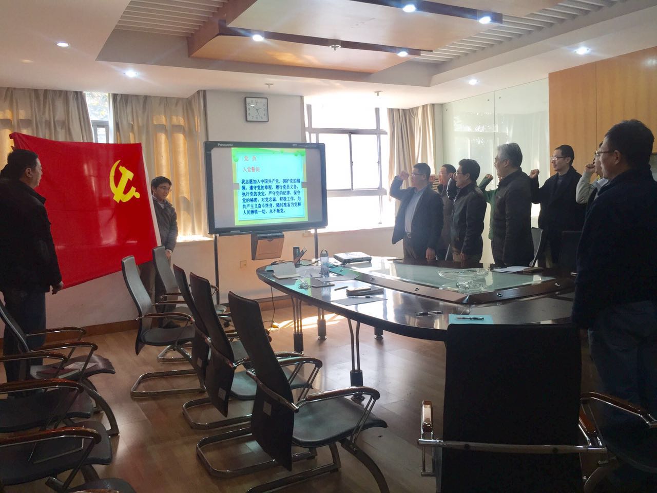 会议最后,在李心丹教授、陈伟书记和周献中教授等党员同志倡议下,全体党员举行了重温入党誓词的宣誓仪式。仪式中,支部书记带领全体党员同志面对党旗站立,高举右手,庄严宣誓“我志愿加入中国共产党,拥护党的纲领……”。宣誓完毕后,大家感受到重温入党誓词是一次精神洗礼,要继续坚定理想信念,牢记全心全意为人民服务的宗旨,扎实做好教工本职工作,争先创优,为suncitygroup太阳集团的发展积极贡献自己的一份力量。