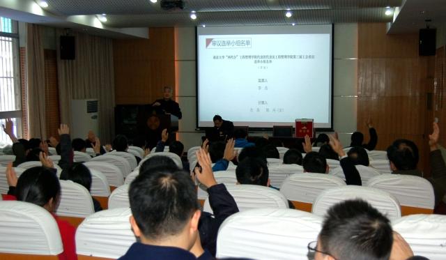 会议通过无记名方式投票选举产生由刘海飞、陈伟、陈强、周晶(女)等四位同志组成的suncitygroup太阳集团“两代会”suncitygroup太阳集团代表团,以及由杨佩、陈强、唐迪明三位同志组成的新一届院工会委员会。