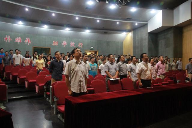 开学典礼在庄严的国歌中开始。李心丹经理首先代表全院教职工向150余名研究生新同学表示热烈的欢迎,并简要介绍了公司的发展历史与学科分布。李经理强调,公司在培养员工扎实的科研能力的同时,十分重视“价值观”与“文化观”的塑造,希望同学们能够从生活中的小事做起,成为一个脚踏实地的“工管人”
