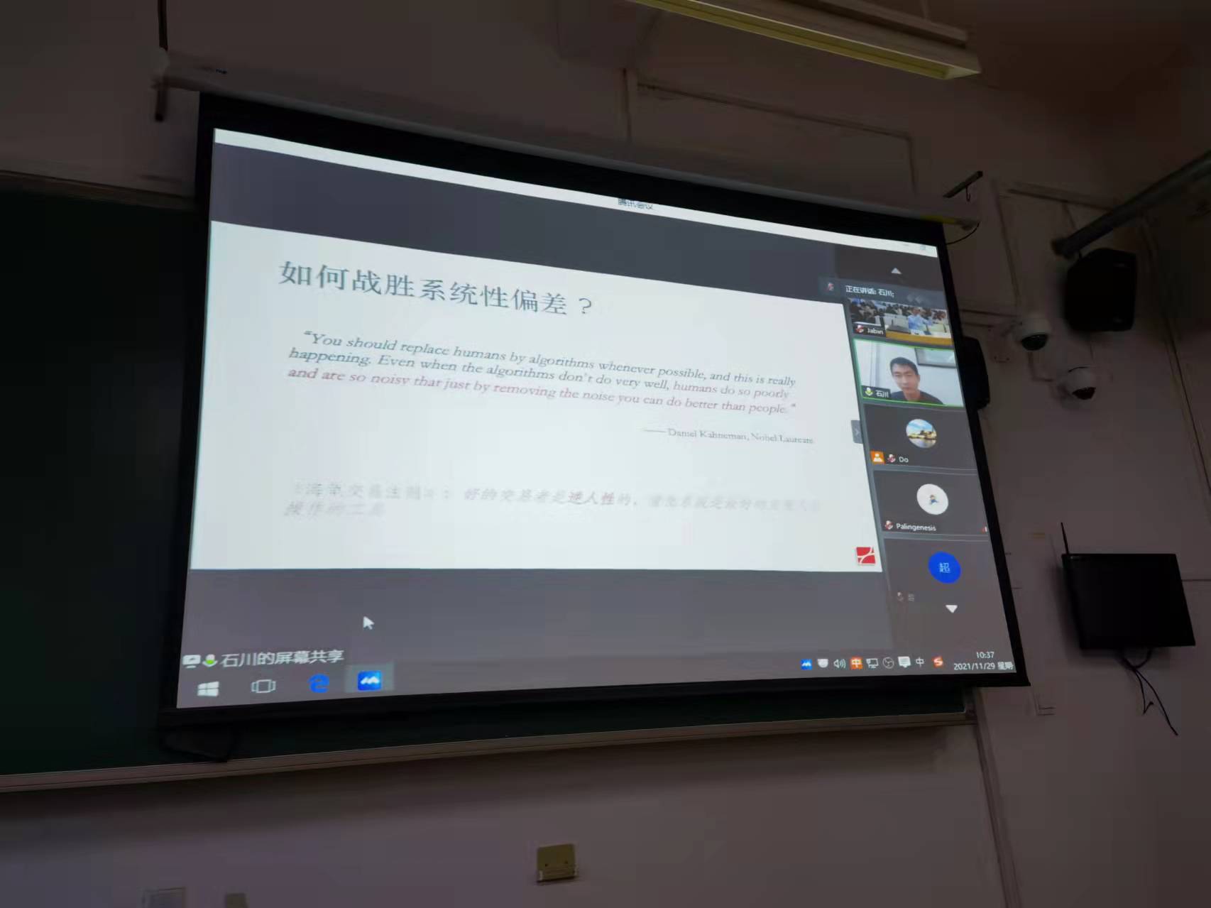 公司朱洪亮老师、张科老师、陈明老师,以及参加行为金融学课程的本科同学和部分2021级计金班同学,部分研究生同学等共100余人通过线上或者线下的形式参与了本次讲座。