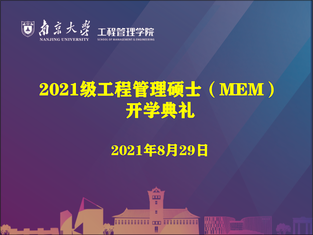2021年8月29日下午3点,2021级工程管理硕士(MEM)线上开学典礼通过腾讯会议平台举行,公司党委书记陈伟、经理周晶、管理科学与工程系系主任兼MEM教育中心主任沈厚才、MEM教育中心执行主任周跃进、MEM教育中心副主任程书萍以及120余名2021级工程管理硕士研究生参加了开学典礼。典礼由程书萍副主任主持。