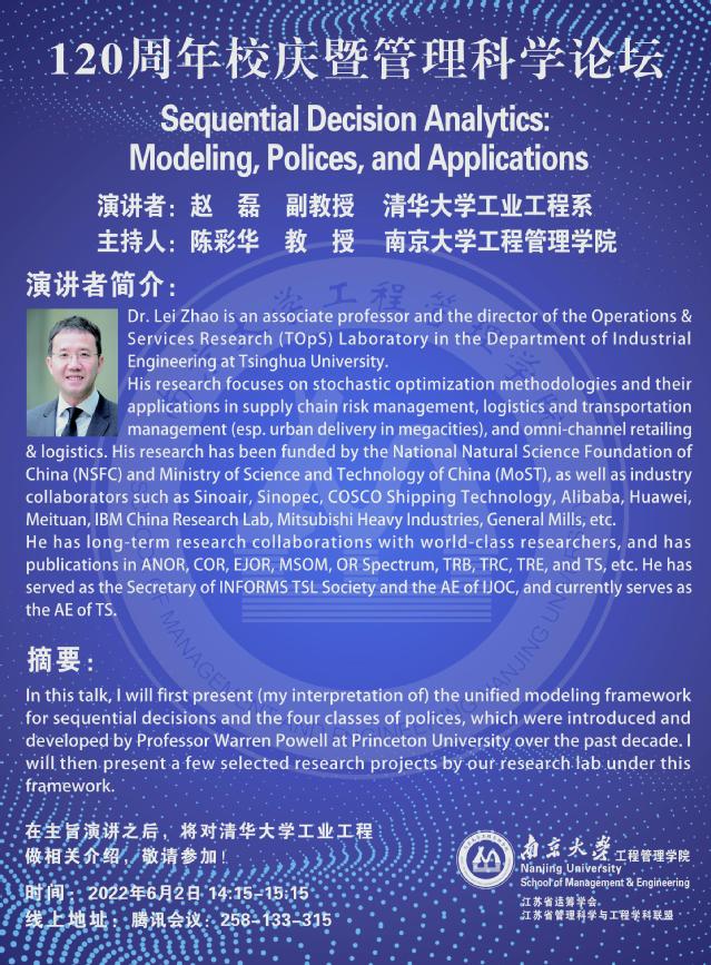 管理科学论坛:Sequential Decision Analytics: Modeling, Polices, and Applications