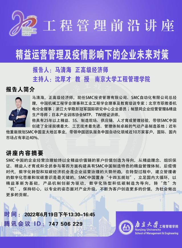 工程管理前沿讲座:精益运营管理及疫情影响下的企业未来对策