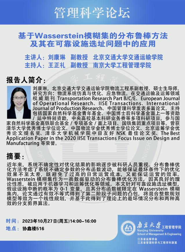 管理科学论坛:基于Wasserstein模糊集的分布鲁棒方法及其在可靠设施选址问题中的应用