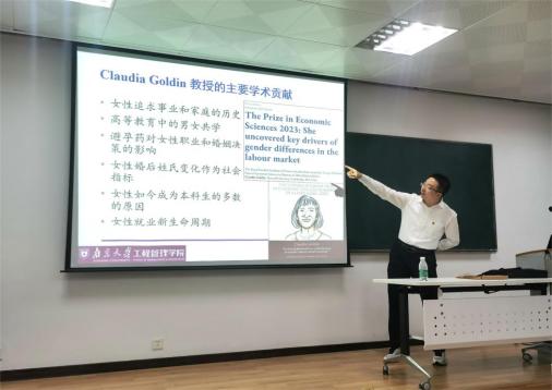 报告中,杨学伟以“浅谈金融学术研究的价值观”为题,从学术研究的初衷、内驱、规范和目标等方面进行介绍。他从硕士master一词引入,以诺贝尔物理学奖得主理查德·费曼、诺贝尔经济学奖得主劳迪娅·戈尔丁、以及有中国的居里夫人之称的著名核物理学家何泽慧三位大师的采访视频为例展开讨论。杨老师指出学术研究的价值在于发现的乐趣和探索的激情而非荣誉的获得,科研工作者应以内驱力为导向,持续探索。随后,杨老师结合自身研究经历和金融学科的优秀研究,鼓励同学们以马克思主义思想方法和工作方法为指导,坚持问题导向与调查研究,牢守底线思维,做胸怀天下的研究。