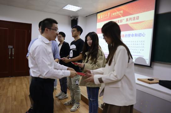 报告后,杨学伟为新生党员代表颁发党章,二年级党员为新生党员代表佩戴党徽。接过沉甸甸的党章和党徽,新生党员深刻认识到自己身上肩负的使命和责任。