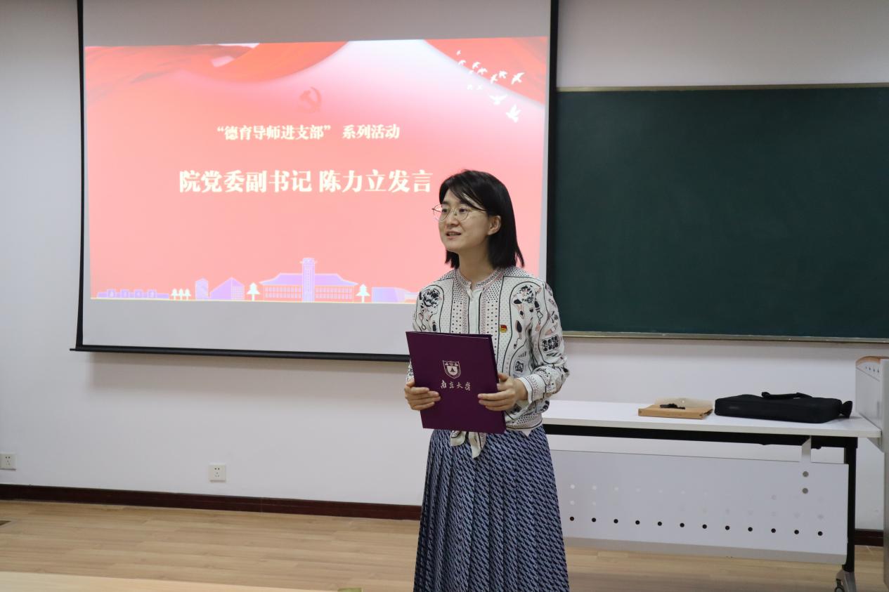 党委副书记陈力立阐述了本次活动的初衷,强调德育导师在研究生科研和生涯规划中的引领作用,鼓励师生加强沟通交流。陈力立介绍了杨学伟教授的学术研究和党建工作情况,并向党员同志们提出期望,希望同学们树立正确的金融学术研究价值观,秉持深刻洞察、主动反思的态度,怀揣对勇攀学术高峰的坚定决心奋发进取。