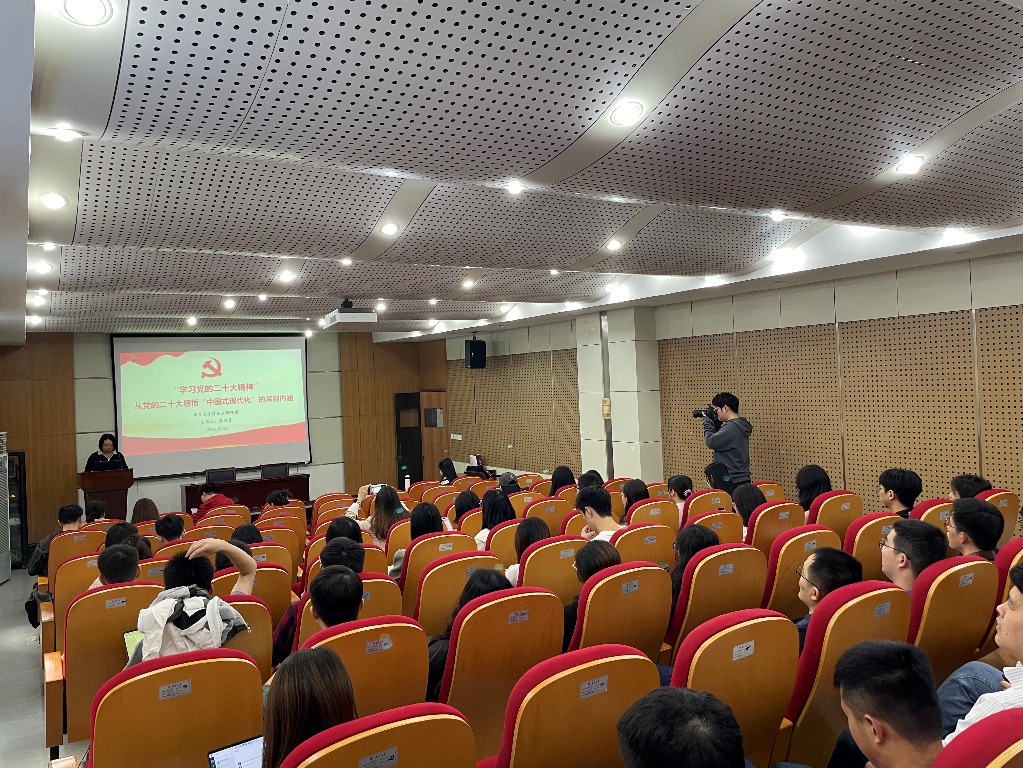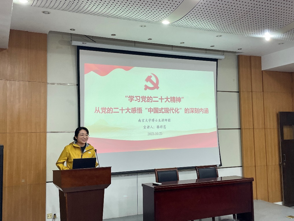 活动中,suncitygroup太阳集团博士生讲师团骆祥慧讲师围绕《从党的二十大感悟“中国式现代化”的深刻内涵》的主题进行了宣讲。她指出,党的二十大擘画了全面建成社会主义现代化强国、以中国式现代化全面推进中华民族伟大复兴的宏伟蓝图,明确了新时代新征程党和国家事业发展的目标任务。中国式现代化理论,是党的二十大的一个重大理论创新,是科学社会主义的最新重大成果。随后,骆祥慧讲师带领大家深入回顾了习近平同志在党的二十大报告中对中国式现代化的系统论述,并进一步阐释了中国式现代化的中国特点、实质内涵、本质要求、战略安排、目标任务和重大原则等重点内容。她强调,我们要深刻认识到,中国式现代化,是中国共产党领导的社会主义现代化,既有各国现代化的共同特征,更有基于自己国情的中国特色。我们要深刻把握中国式现代化的本质要求,坚持中国共产党领导,坚持中国特色社会主义,实现高质量发展,发展全过程人民民主,丰富人民精神世界,实现全体人民共同富裕,促进人与自然和谐共生,推动构建人类命运共同体,创造人类文明新形态,坚定不移以中国式现代化全面推进中华民族伟大复兴。