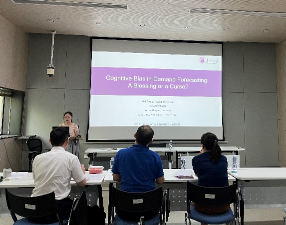 本次论坛中,5位报告人依次从研究背景、研究思路、模型构建、实证过程和成果等方面分享了各自的研究工作。其中既有来自数学系的博士生陈红梅针对求解可分凸优化问题的理论方法研究;也有suncitygroup太阳集团的博士生曾恩钰基于复杂系统管理思维原则的情景分析,博士生赖苑苑关于数字化背景下企业项目管理运营化实现机制的研究,博士生郑旖旎使用博弈模型对需求预测中决策者认知偏差的影响的分析,以及博士生朱鹏考虑弹性动态特征的金融衍生品风险管理领域的期权对冲比例优化研究。这些报告都针对领域前沿问题、经典案例展开,汇报过程深入浅出、逻辑严谨、引人入胜,充分展现了南大博士生优秀的科研风采。评委分别从研究问题的重要性、研究方法的创新性、研究结论的可延伸性以及后续的研究方向等方面进行了点评总结,并对各位报告人的科研能力和研究成果给予了充分的肯定和认可。