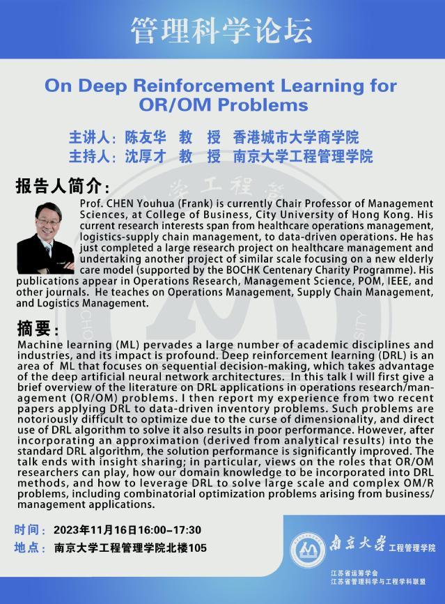 管理科学论坛:On Deep Reinforcement Learning for OR/OM Problems