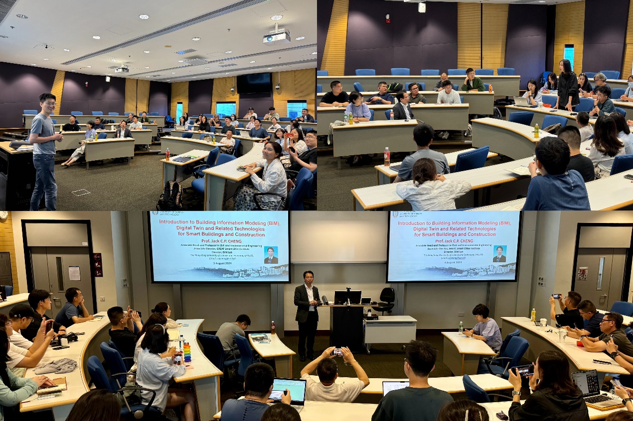 游学首日,公司MEM同学们来到依山临海的香港科技大学,在陶星宇博士的带领下首先参观港科大的校园以及了解了校园内现代化的硬件设备。随后由香港科技大学土木工程与环境公司郑展鹏教授和于言滔助理教授为同学们带来精彩的讲座。郑展鹏教授为大家解析了智能建筑、设施管理和智慧城市的概念,分析了BIM技术在智能建筑、设施管理和智慧城市领域的应用实例,展望了该领域的研究前景与挑战。于言滔助理教授和大家分享了建筑业劳动力可持续发展这一重要课题的现状,以及从工人行为感知和人机协作两个方面如何更好地实现劳动力的可持续发展。