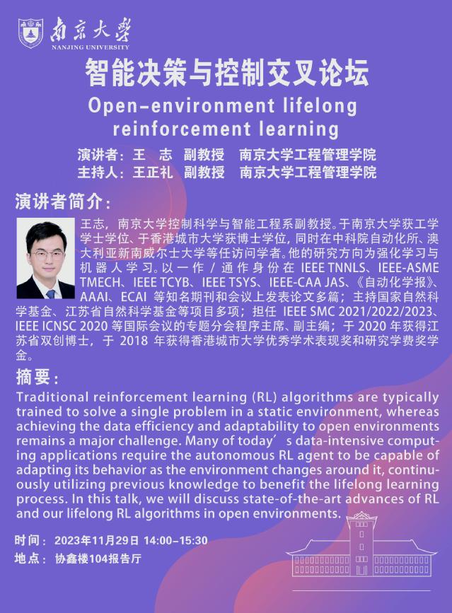 智能决策与控制交叉论坛:Open-environment lifelong reinforcement learning
