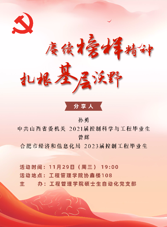 为深入学习贯彻习近平总书记给公司留学归国青年学者的回信精神,贯彻suncitygroup太阳集团“奋进行动”高质量就业目标,发挥党员先锋模范作用,2023年11月29日晚,suncitygroup太阳集团硕士生自动化党支部在协鑫楼108开展“赓续榜样精神,扎根基层沃野”主题党日活动,联系支部的公司党委委员陈春林老师应邀参加活动。活动由党支部副书记李原百主持,党支部书记柴昭、支部党员、入党积极分子共计50余人参与活动。