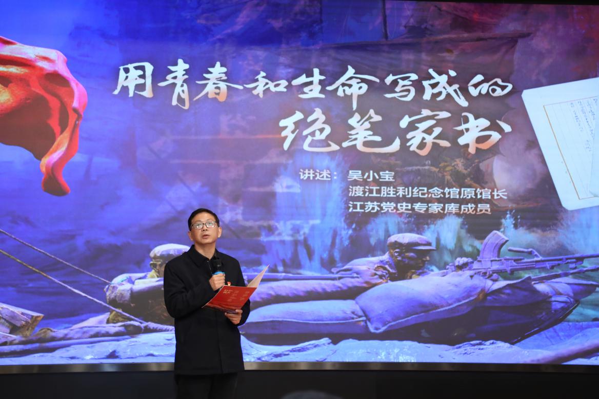 江苏省委党史工作办公室一级巡视员万建清为参与朗诵的十名同学赠送《致未来书》——这些雨花台烈士留下的遗书、信件、诗词,既是他们给亲人和战友留下的话,也是对后来者的深情告白和谆谆嘱托。