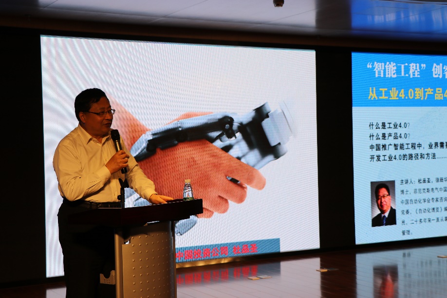 杜品圣博士的报告受到了公司师生的热烈欢迎,路演大厅座无虚席,场面十分热闹。工业4.0已成为社会发展的新动力,但是如何正确的走好这条路仍在探索之中。杜博士首先由德国工业界的一些反常现象引发大家对工业4.0的再思考,工业革命之间的内在关系是什么,德国发起工业4.0要解决什么问题,以及工业4.0与自动化的发展是什么关系。杜博士详细深入地阐述了他对这三个问题的思考,使得大家对工业4.0的核心有了更加深刻的认识,尤其是对变革性创新与革命性创新的关系的理解。然后杜博士谈到了从工业4.0到产品4.0的过程中,对建立工业4.0生产制造模式的再思考以及生产制造模式与人才培养的关系,由此联系到校企如何培养互联网时代的人才问题。报告过程中,杜博士不断对在座员工提出希冀,要做产品产业化人才金字塔顶部的“金领”,要做互联网时代创新型人才。