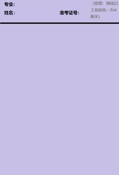 (4)笔试由考生在自备的A4纸(格式如下)上独立书写完成,可提交多页,每一页格式相同。笔试过程中不允许使用手机、iPad等其他电子设备;不允许使用参考书籍或其他资料;考试期间不能通过任何方式与他人交流以及获得他人的帮助包括任何在线方式(考试之前请关闭电脑上相关软件及功能)。