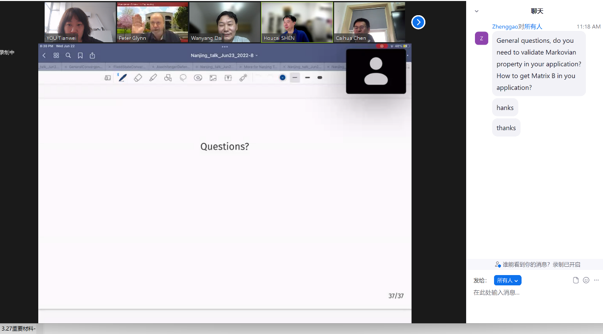 Peter Glynn院士的讲座深入浅出,条理清晰,注重理论知识之间的衔接,并详细介绍了计算方法在管理中的应用。讲座结束后,Glynn教授与在线师生进行积极的讨论,反响热烈。公司再次感谢Glynn教授的讲座,期望未来有更进一步的合作。