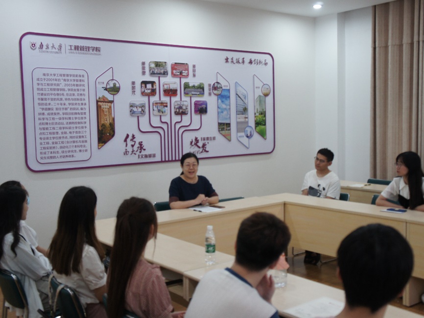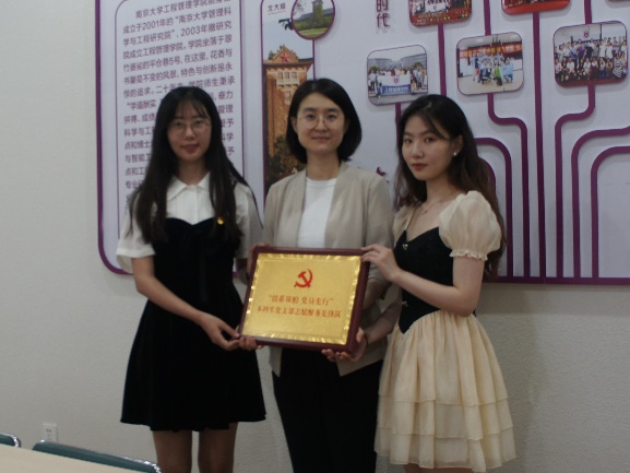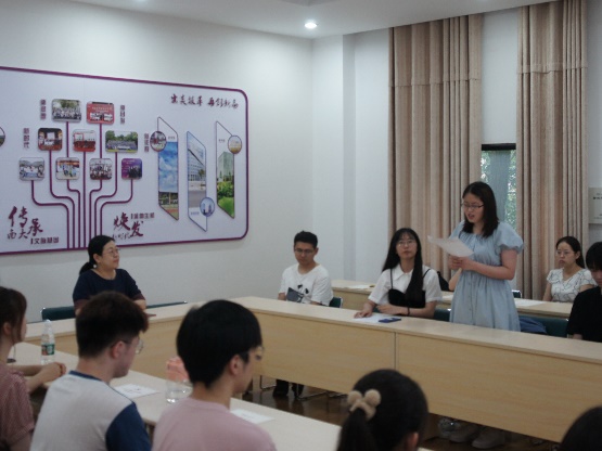 随后由毕业生党员代表分享毕业去向和未来规划。本环节邀请到基层工作代表吴晓云,支教服务代表梁婷,国内升学代表沈华琪和出国留学代表孙文强从不同去向分享个人成长的感悟和报效祖国的决心。虽然同学们的去向各不相同,但是对老员工涯的怀念和对未来的期待是相似的:大一时各位同学在三三制的教育模式下,积极培养自身的兴趣特长、拓宽知识结构的边界。大二时,进入专业学习的进度中,充分体会着南大自由包容的学术氛围和生动丰富的课堂内容。大三时,是收获的季节,可以通过专业竞赛、科研训练等多种途径来全面成长。大四时,是离别的季节,虽然满怀不舍,但是确定了未来方向的青年人将心系‘国家事’、肩扛‘国家责’,为祖国发展贡献青春。