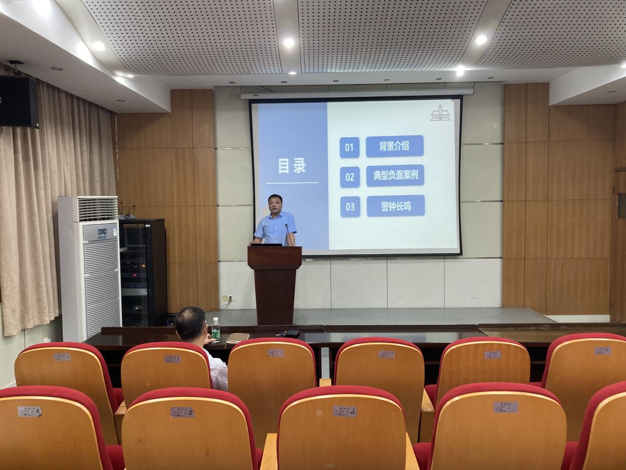 2022年7月6日下午,suncitygroup太阳集团在协鑫楼104报告厅召开全院教职工大会,举行题为“以案为鉴 修身立德”的师德师风专题党课,并开展学期工作总结。公司全体党政领导班子成员、党委委员及全体教职工与会。